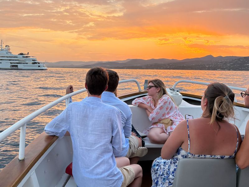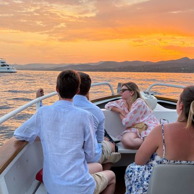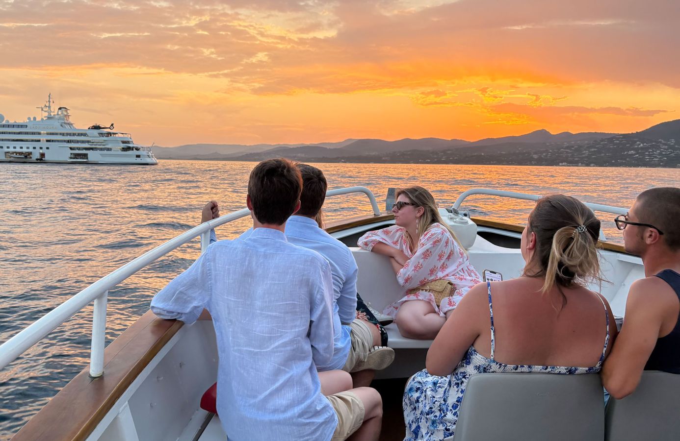 A sunset boat trip to enjoy the most beautiful light in the Gulf: a gentle atmosphere, golden reflections on the water, iconic views of the coastline and memorable photo moments. A calm and friendly escape, ideal for discovering Saint-Tropez from a different perspective, away from the bustle.